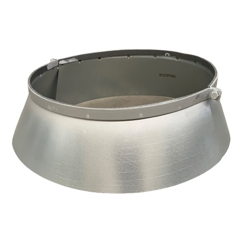 Origine de notre collerette pare-pluie, acier galvanisé Z275, Ø 100, embase 260 :